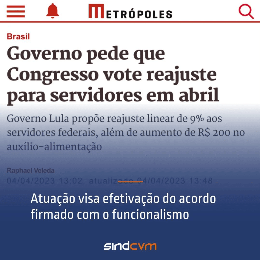 O SindCVM, em conjunto com outras representações do funcionalismo, já dialoga com deputados e senadores, visando garantir a aprovação célere das matérias e a consequente efetivação do reajuste com efeitos financeiros a partir de 1º de junho, conforme pactuado.