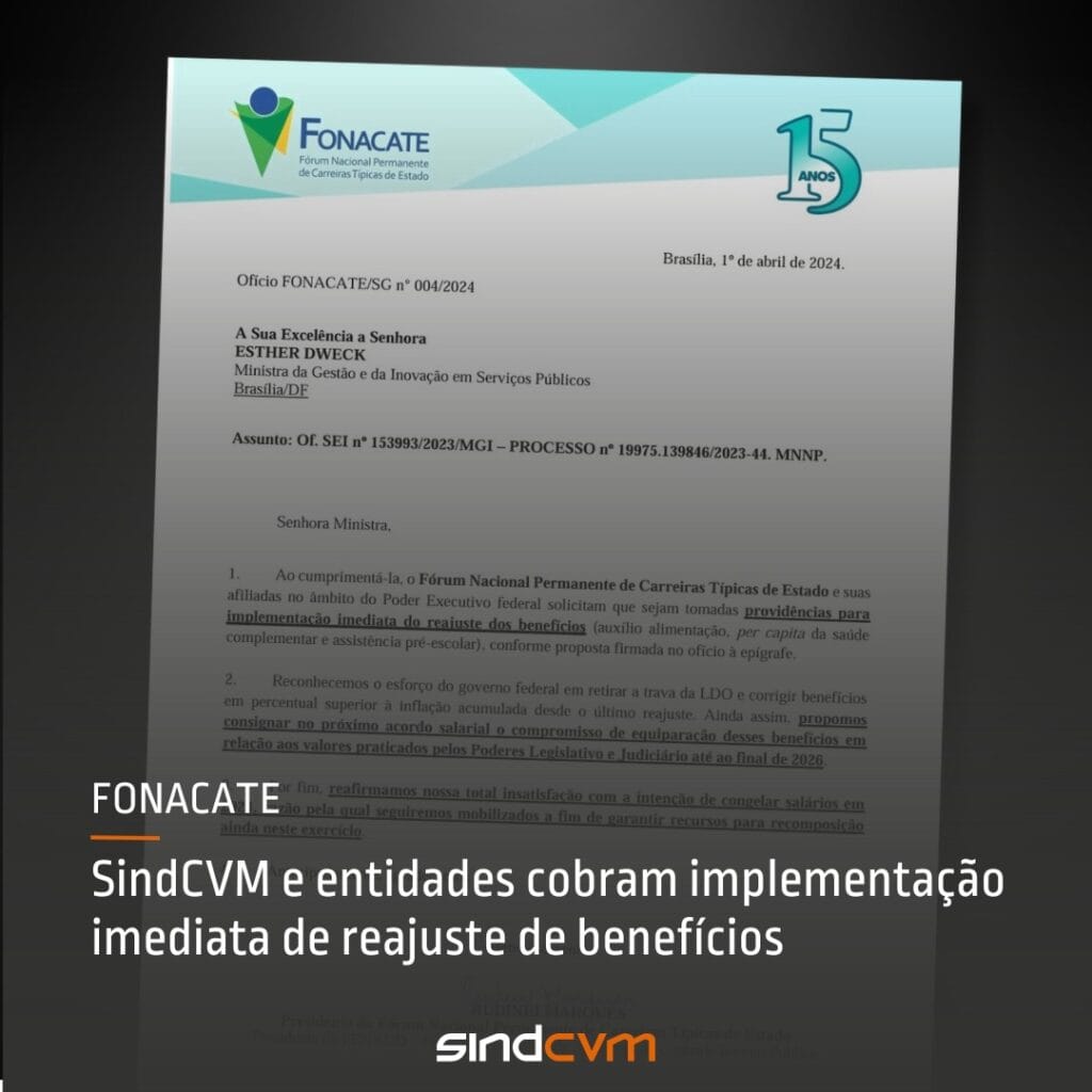 SindCVM e outras entidades representativas do Executivo cobram implementação imediata de reajuste de benefícios