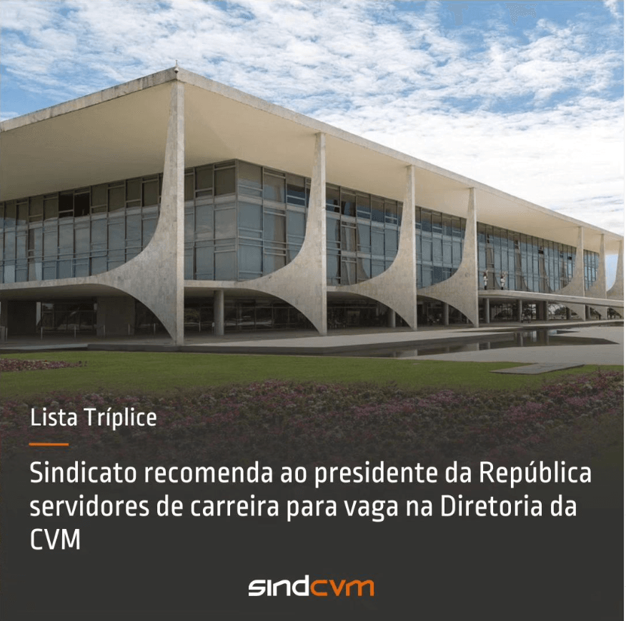 Sindicato recomenda ao presidente da República servidores de carreira para a vaga na Diretoria da CVM