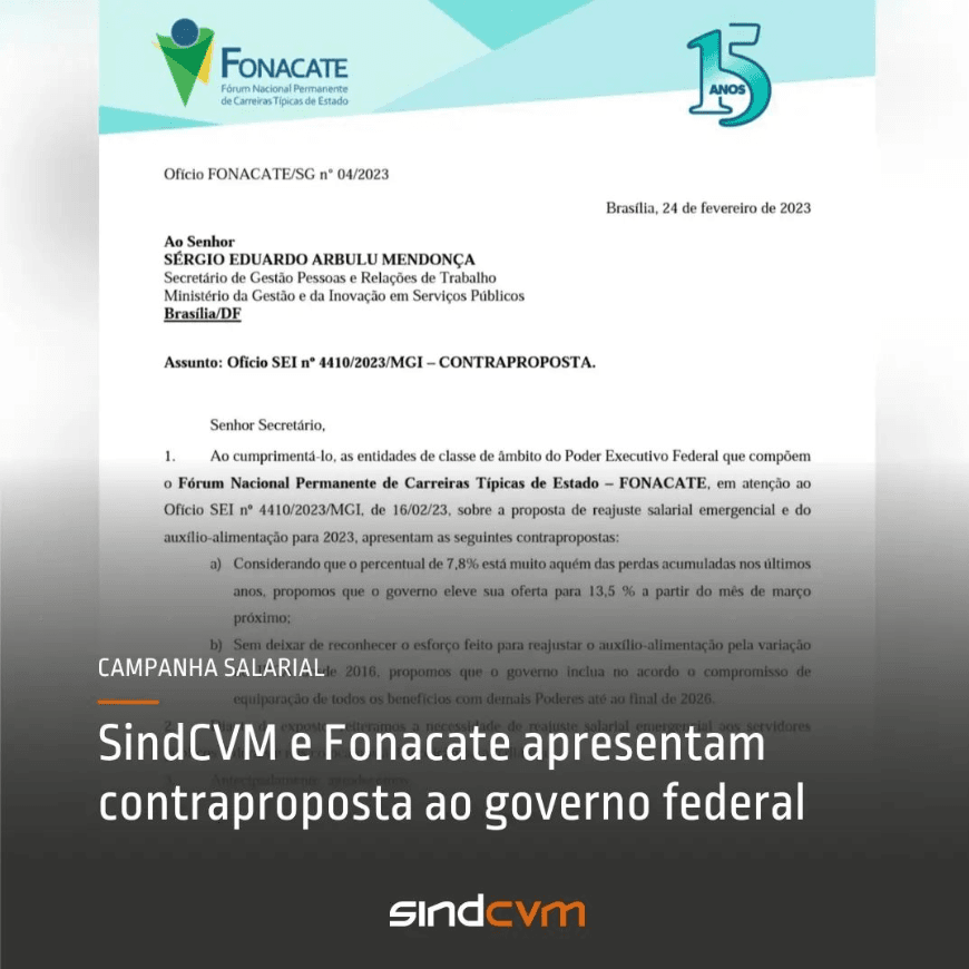 Por fim, o SindCVM e Fonacate reafirmam a disposição ao diálogo.