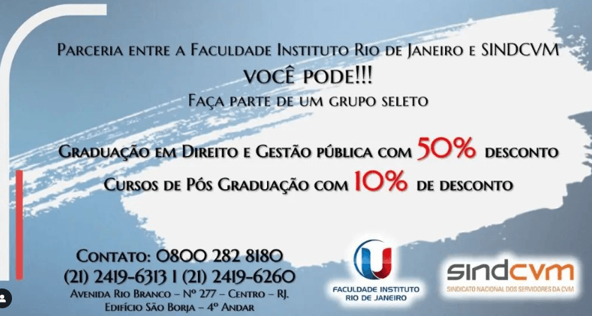 O SindCVM acaba de iniciar nova parceria para beneficiar seus filiados. O sindicato firmou um convênio com a Faculdade Instituto Rio de Janeiro – FIURJ.