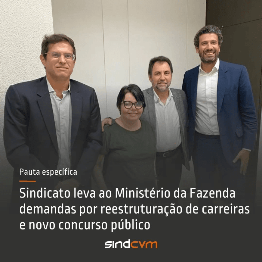 Os temas em discussão fazem parte da pauta prioritária do SindCVM. O Sindicato segue com a agenda de diálogos, no Executivo e no Legislativo, para buscar o endereçamento de pleitos que visam o fortalecimento das carreiras da Comissão de Valores Mobiliários.